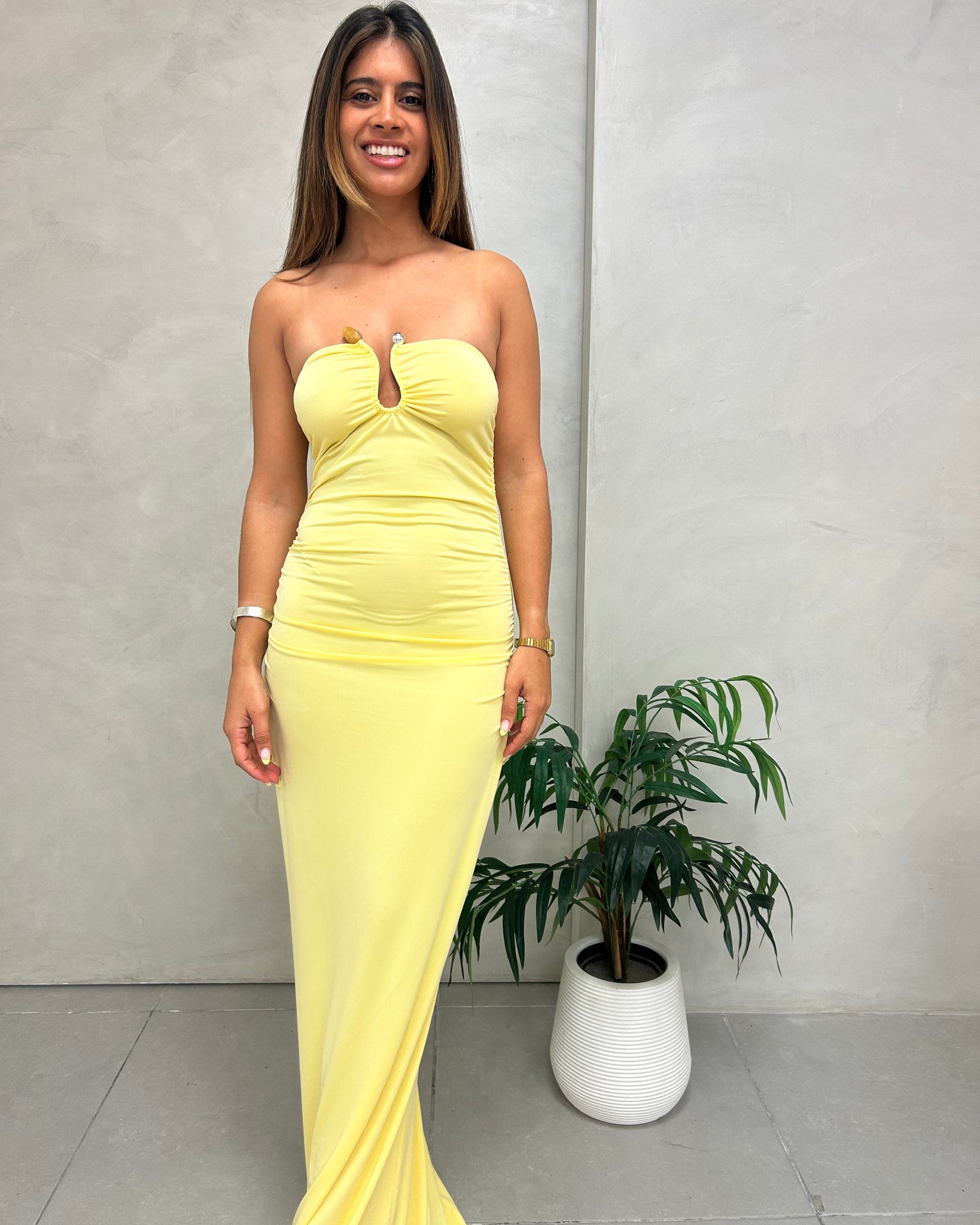 VESTIDO LARGO STRAPLESS ESCOTE U