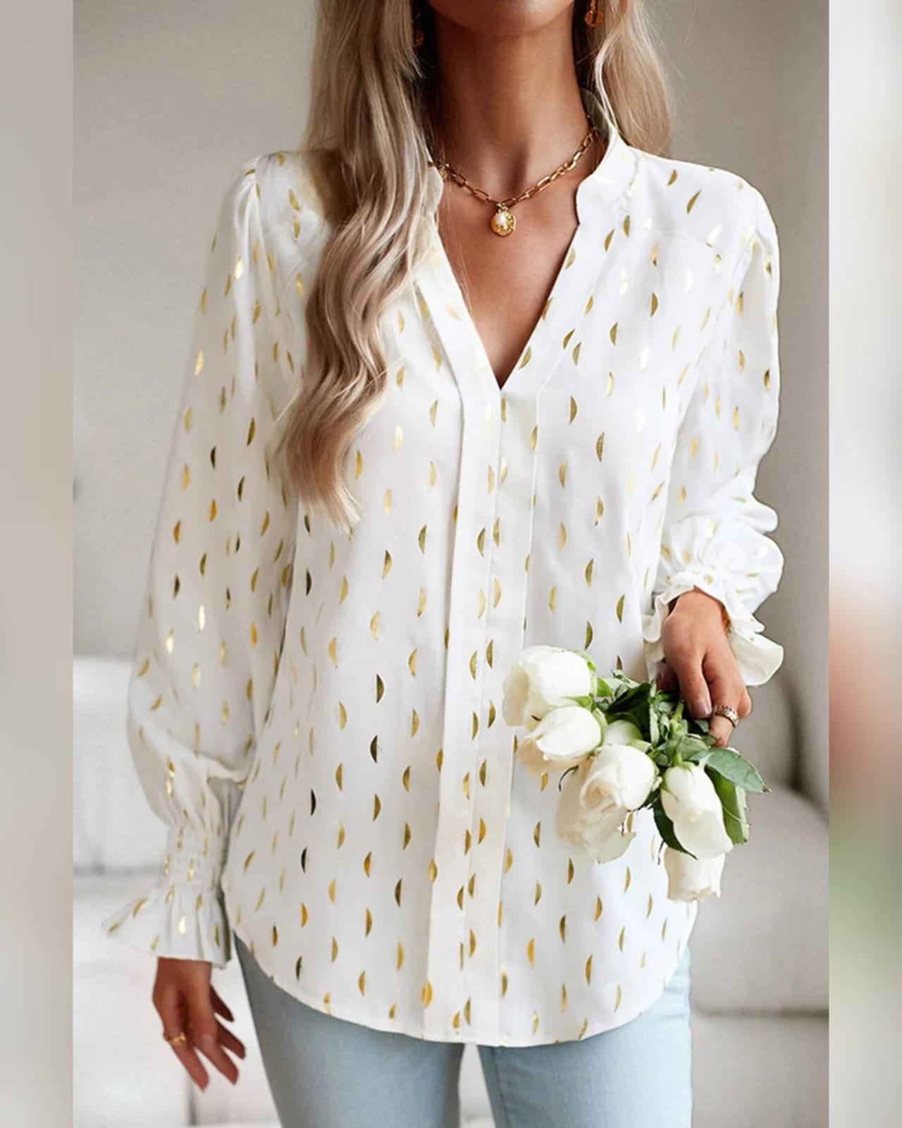 BLUSA MANGA LARGA ESTAMPADO DORADO
