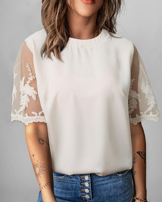 BLUSA ENCAJE CON APLIQUES CUELLO TALLES GRANDES