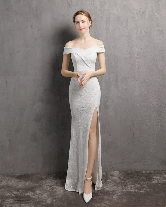 VESTIDO LARGO LENTEJUELAS FORMAS HOMBROS CAIDOS