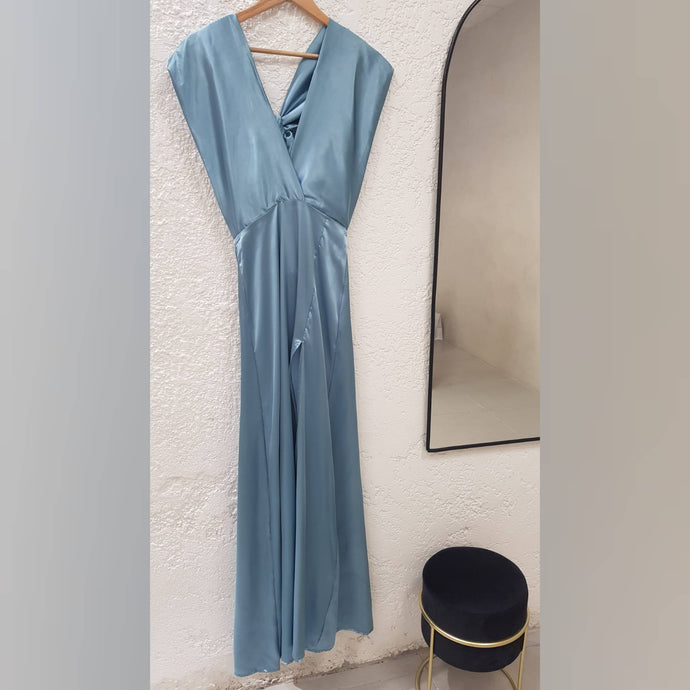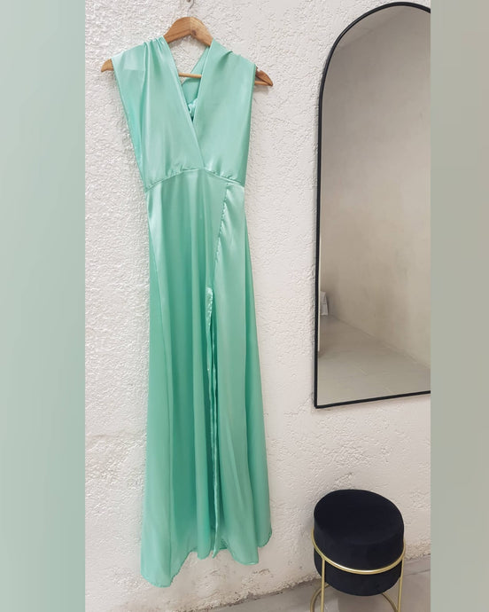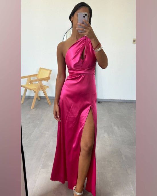 VESTIDO LARGO TUBO BRILLO CON TAJO