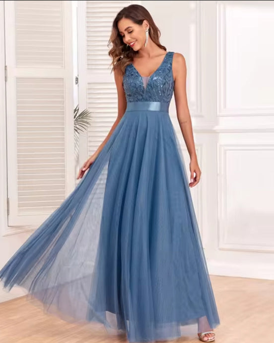 VESTIDO LARGO LENTEJUELAS ESCOTE V TALLES GRANDES