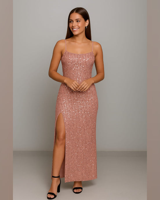 VESTIDO BASICO LENTEJUELAS CON TAJO