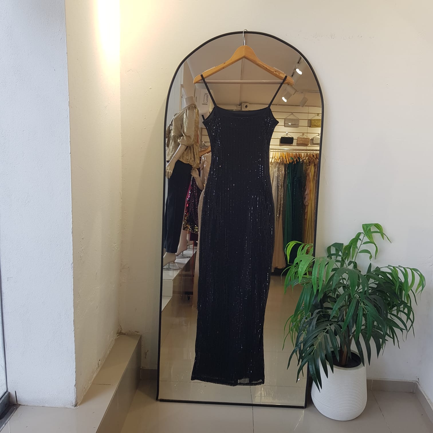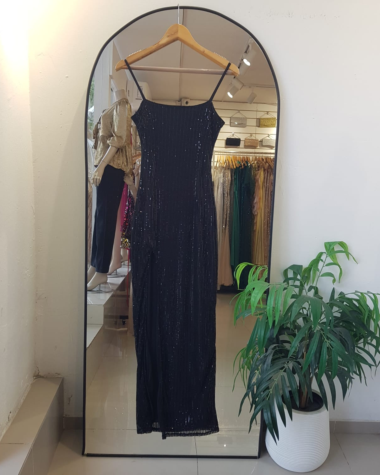 VESTIDO BASICO LENTEJUELAS CON TAJO