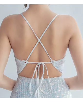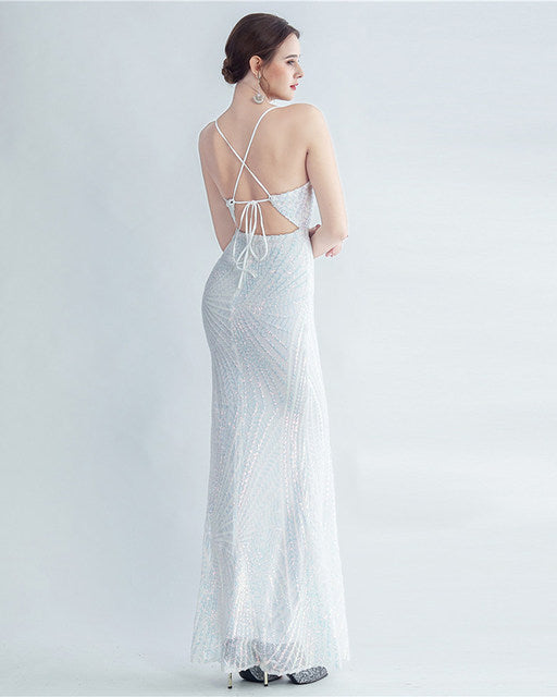 VESTIDO LARGO ESCOTE V LINEAS LENTEJUELAS