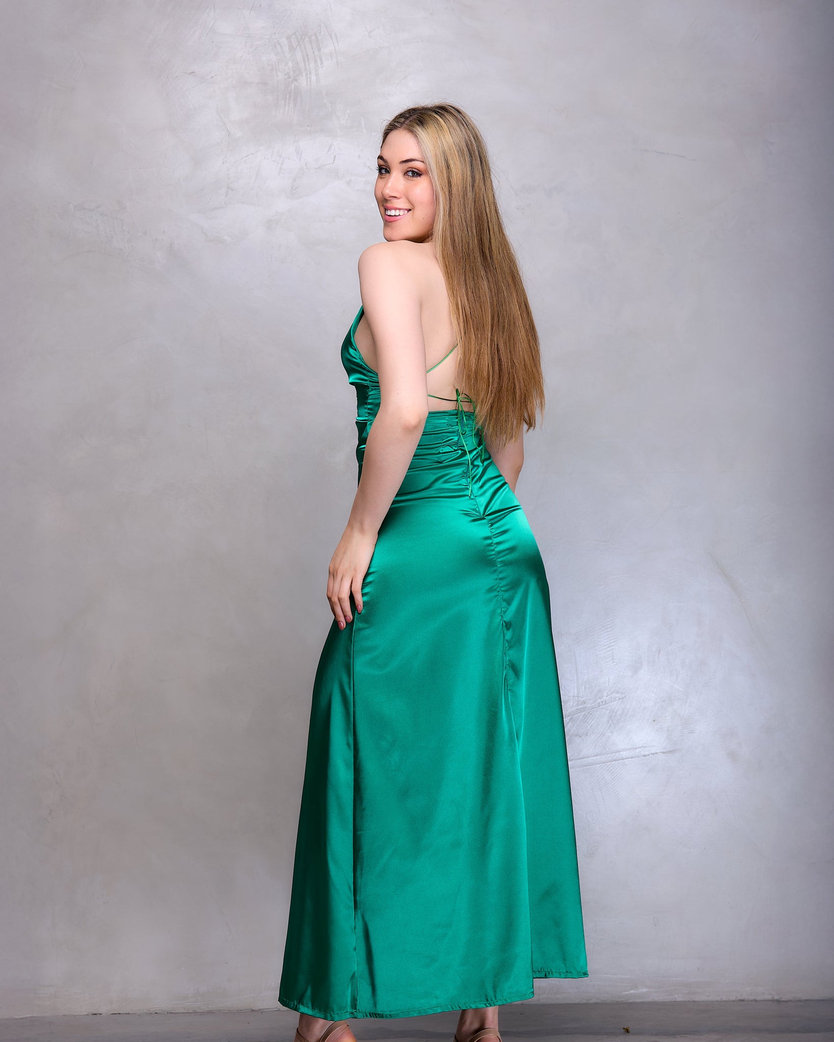 VESTIDO LARGO SEDA TOP FRUNCIDO MÁS FALDA EN A