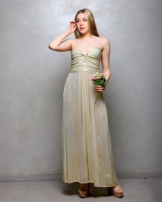 VESTIDO LARGO STRAPLESS NUDO CON BRILLO