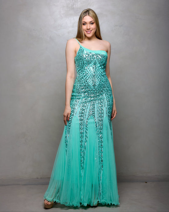 VESTIDO LARGO SIRENA LENTEJUELAS FORMAS