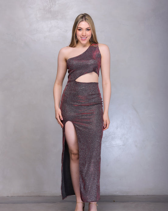 VESTIDO LARGO UN HOMBRO CINTURA ABIERTA
