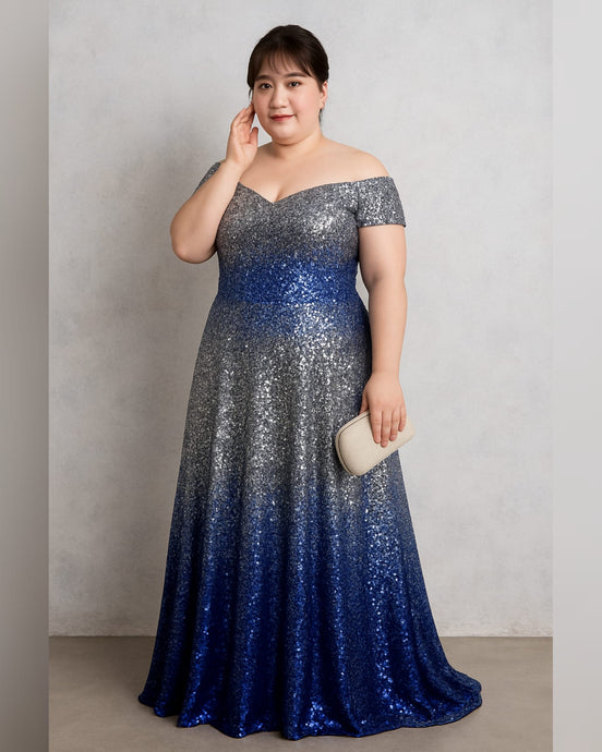 VESTIDO LARGO LENTEJUELA DEGRADE TALLES GRANDES